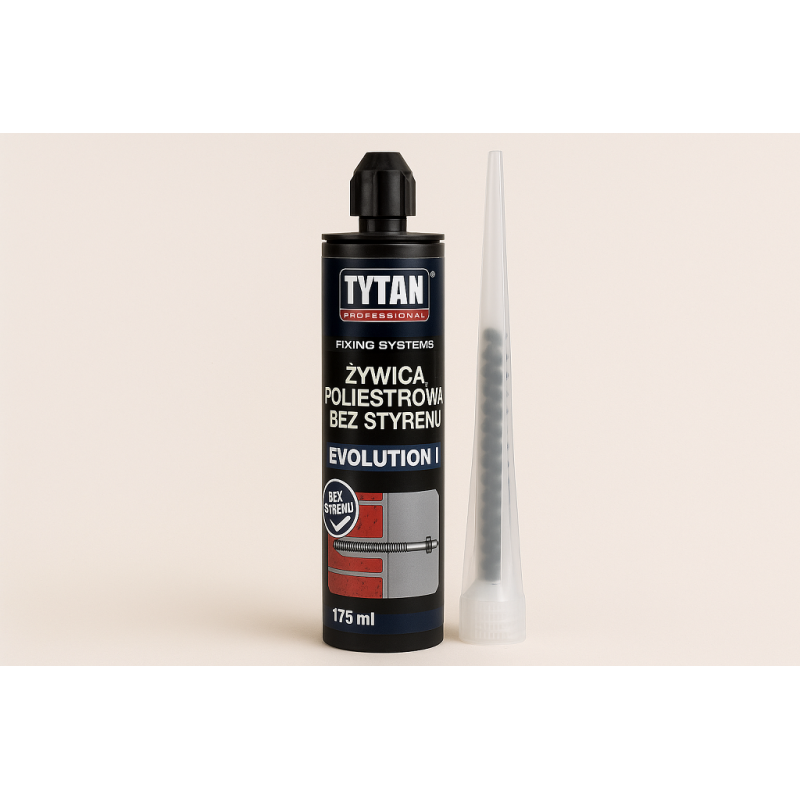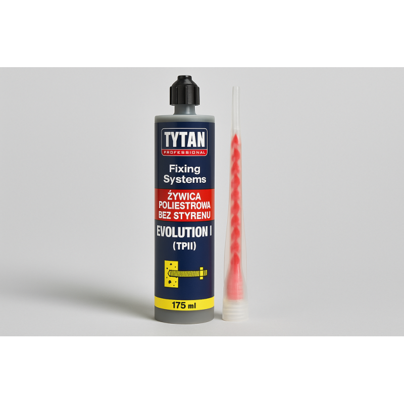 TYTAN PROFESSIONAL Fixing Systems to renomowana marka w dziedzinie chemii budowlanej. Ich żywica poliestrowa bez styrenu Evolution I (TPII) o pojemności 175 ml to doskonałe rozwiązanie do mocowania kotew chemicznych. Dzięki innowacyjnemu składowi, zapewnia wyjątkową wytrzymałość i trwałość połączeń. Idealna do zastosowań wewnętrznych i zewnętrznych, gwarantuje stabilność konstrukcji. TYTAN PROFESSIONAL Fixing Systems to pewny wybór dla profesjonalistów, którzy cenią sobie jakość i skuteczność.