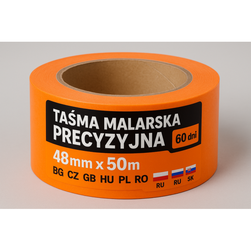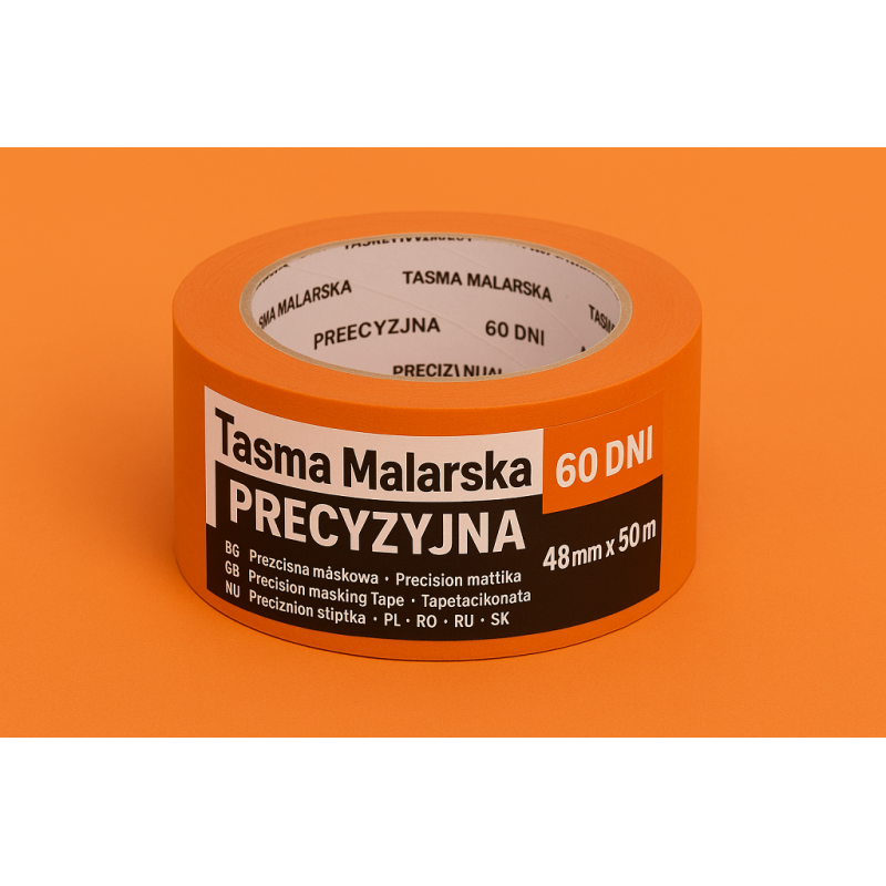 Taśma Malarska Precyzyjna 60 dni 48mm x 50m pomarańczowy BG-CZ-GB-HU-PL-RO-RU-SK