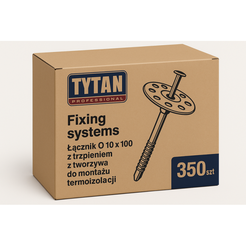 Produkt TYTAN PROFESSIONAL Fixing systems Łącznik O 10 x 100 z trzpieniem z tworzywa do montażu termoizolacji to doskonałe rozwiązanie dla profesjonalistów zajmujących się montażem termoizolacji fasadowych. W zestawie znajduje się aż 350 sztuk łączników, co pozwala na efektywne i kompleksowe wykorzystanie ich podczas prac.