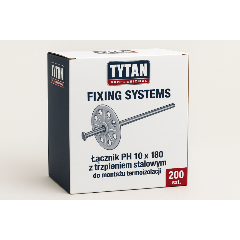 TYTAN PROFESSIONAL Fixing systems to idealne rozwiązanie do montażu termoizolacji. Łącznik O 10 x 180 z trzpieniem stalowym zapewnia solidne i trwałe połączenie, które utrzyma izolację na swoim miejscu. Zestaw zawiera aż 200 sztuk, co sprawia, że starczy na większe projekty. Dzięki wysokiej jakości materiałom i precyzyjnemu wykonaniu, możesz mieć pewność, że Twoja termoizolacja będzie skuteczna i niezawodna przez wiele lat. Idealny wybór dla profesjonalistów dbających o trwałość i jakość wykonania.