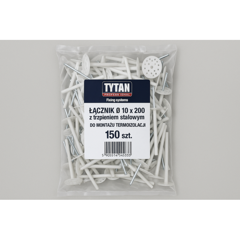 Produkt TYTAN PROFESSIONAL Fixing systems to doskonałe rozwiązanie do mocowania termoizolacji fasadowych. Łącznik O o wymiarach 10 x 200 z trzpieniem stalowym zapewnia niezawodne i trwałe połączenie, które skutecznie utrzymuje izolację na swoim miejscu.