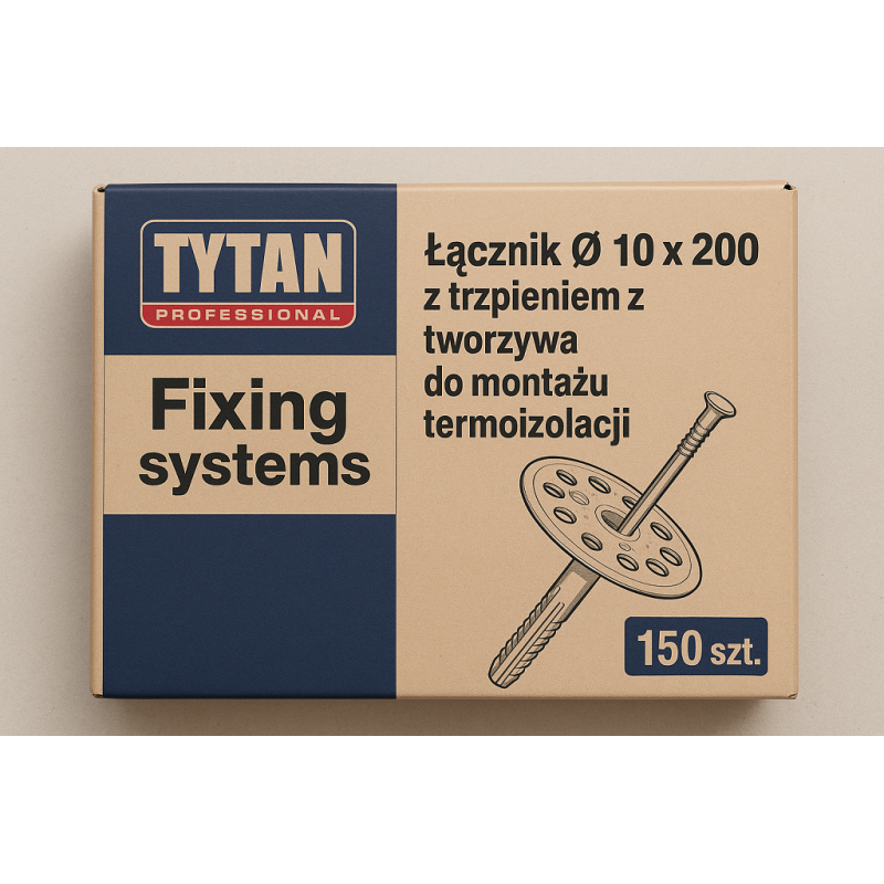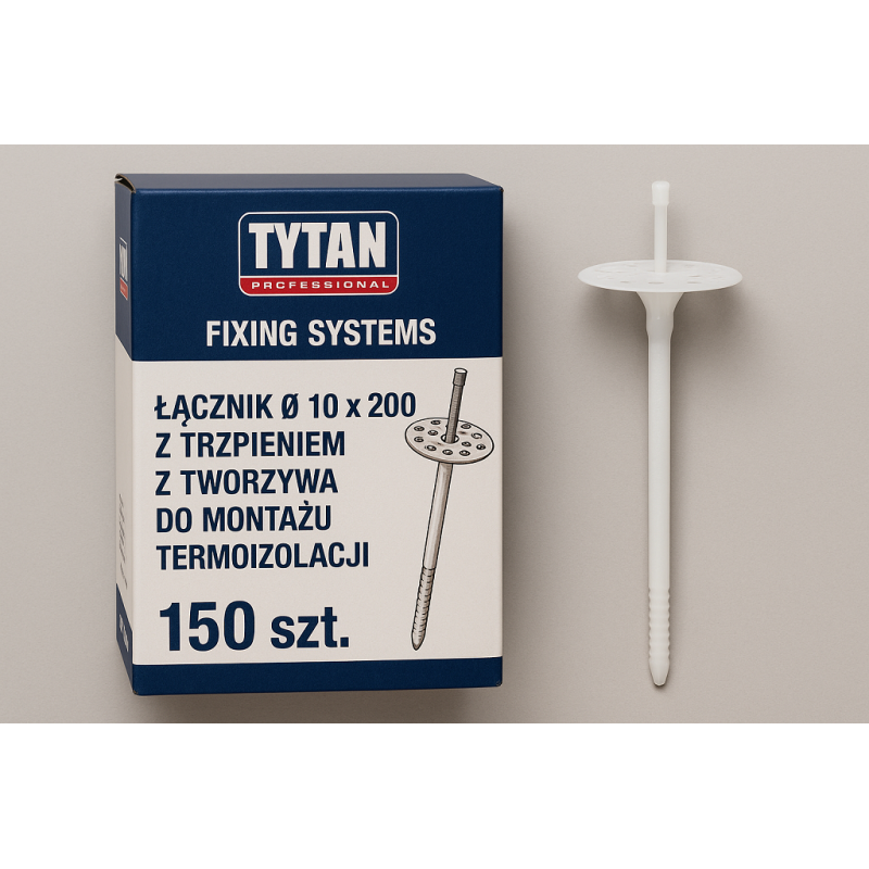 TYTAN PROFESSIONAL Fixing systems Łącznik O 10 x 200 z trzpieniem z tworzywa do montażu termoizolacji to doskonałe rozwiązanie do mocowania termoizolacji fasadowych. W zestawie znajduje się aż 150 sztuk łączników, co pozwala na efektywne i solidne zamocowanie materiału termoizolacyjnego.