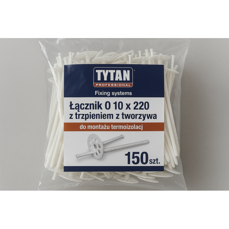 Produkt TYTAN PROFESSIONAL Fixing systems Łącznik O 10 x 220 z trzpieniem z tworzywa do montażu termoizolacji 150 szt PL to doskonałe rozwiązanie do mocowania termoizolacji fasadowych.