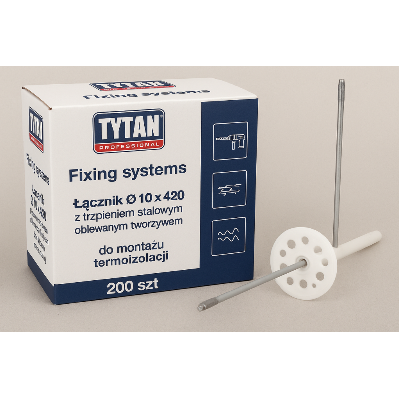 TYTAN PROFESSIONAL Fixing systems to idealne rozwiązanie do montażu termoizolacji. Łącznik O 10 x 420 z trzpieniem stalowym oblewanym tworzywem gwarantuje solidne i trwałe połączenie. Zestaw zawiera aż 200 sztuk, co sprawia, że wystarczy na większe projekty. Dzięki wysokiej jakości materiałom, montaż fasady staje się prostszy i bardziej efektywny. Ten produkt z kategorii ZAMOCOWANIA TERMOIZOLACJI FASADOWYCH zapewnia niezawodność i wytrzymałość na lata.