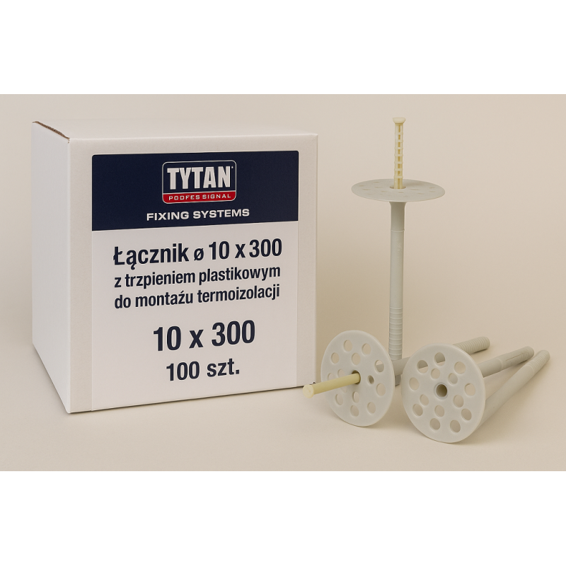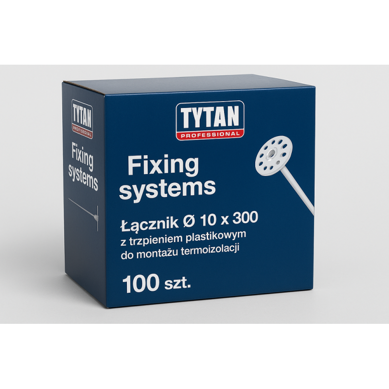 TYTAN PROFESSIONAL Fixing systems to idealne rozwiązanie do montażu termoizolacji fasadowych. Łącznik O 10 x 300 z trzpieniem plastikowym gwarantuje stabilność i trwałość instalacji. W opakowaniu znajduje się aż 100 sztuk, co pozwala na kompleksowe pokrycie powierzchni. Dzięki wysokiej jakości materiałom, montaż termoizolacji staje się prosty i efektywny. Ten produkt jest niezbędny dla profesjonalistów dbających o solidne zamocowanie izolacji termicznej na elewacji budynku.